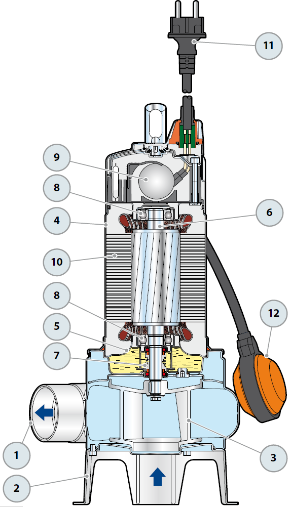 Produkt besteht aus: GEP-Schmutzwasserpumpe, 10-Meter-Kabel, Schwimmerschalter (1F-Version), Steuerbox (1F-Version).
