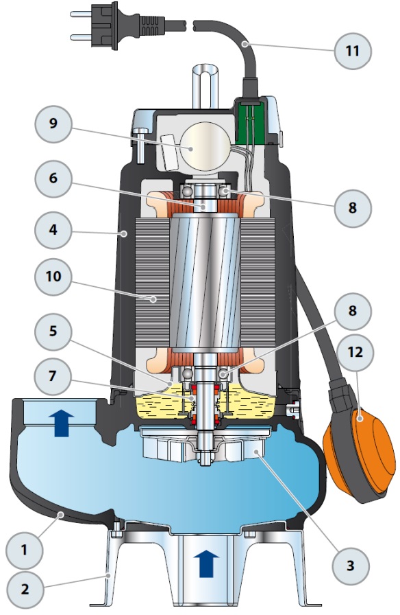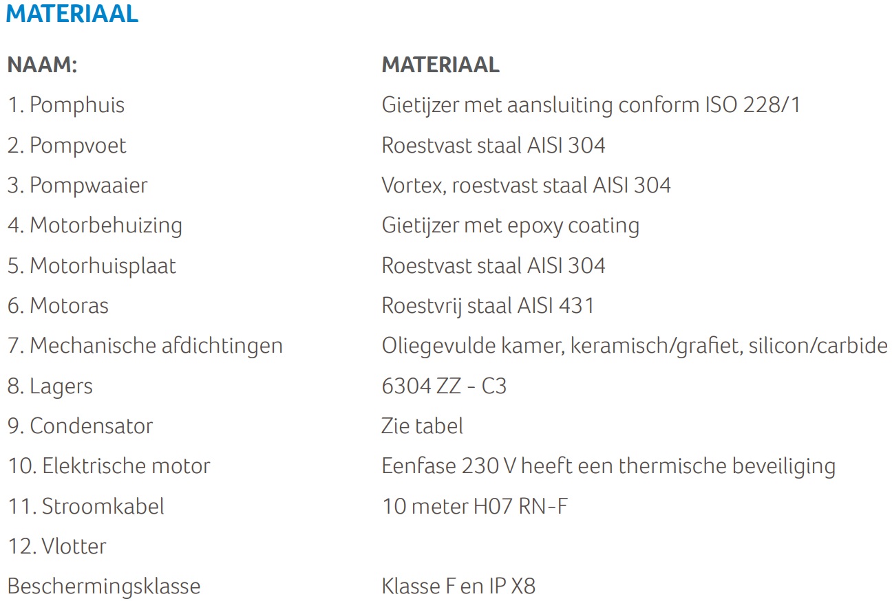 Produkt besteht aus: GEP-Schmutzwasserpumpe, 10-Meter-Kabel, Schwimmerschalter (1F-Version), Steuerbox (1F-Version).