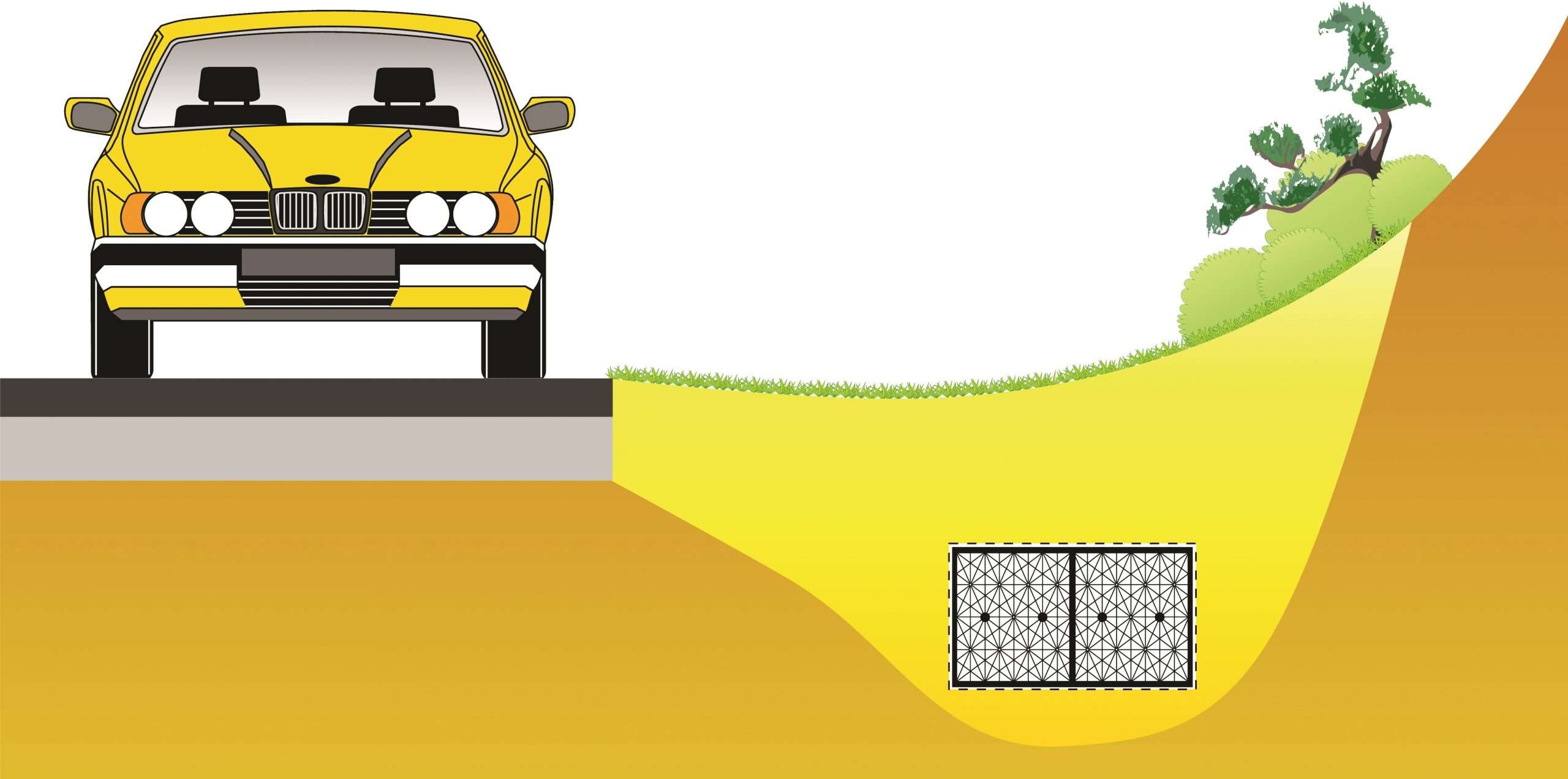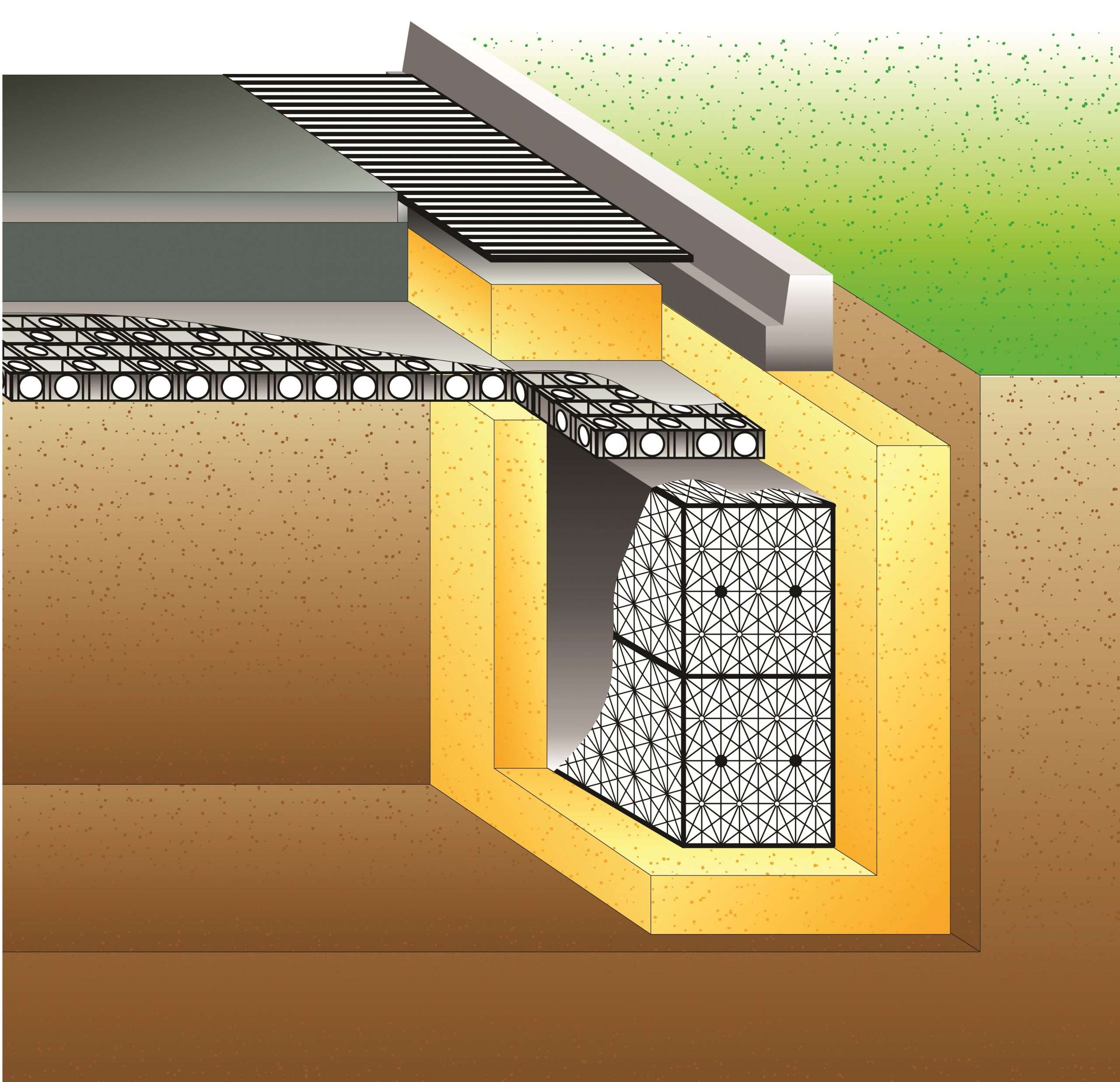 Die Infiltrationsboxen müssen mit Geotextil “umwickelt” werden. Geotextilien sorgen dafür, dass das Regenwasser aus den Versickerungskästen abfließt und gleichzeitig Sand und Wurzeln zurückhält, damit Sand und Erde die Versickerungskästen nicht von außen verstopfen können. Die Größe des Geotextils wird durch den Bereich bestimmt, in dem die Drainageplatten platziert werden, plus 30 cm Überlappung zwischen den Rollen. Wenn die Versickerungskisten auf ein Sandbett gestellt werden, kann das spezielle Versickerungs-Geotextil von GEP verwendet werden.