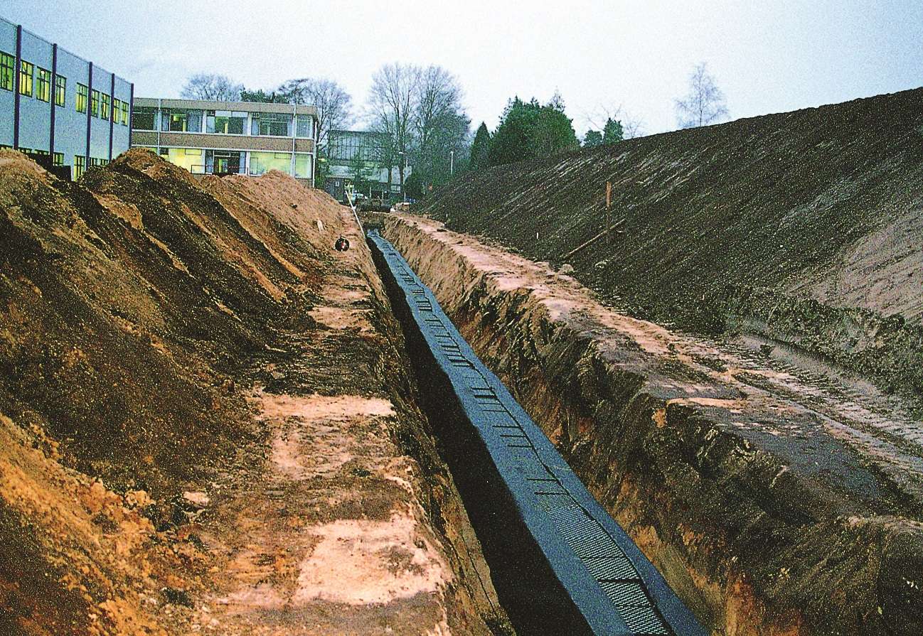 Infiltratieboxen in een compleet systeem voor de afkoppeling van regenwater.