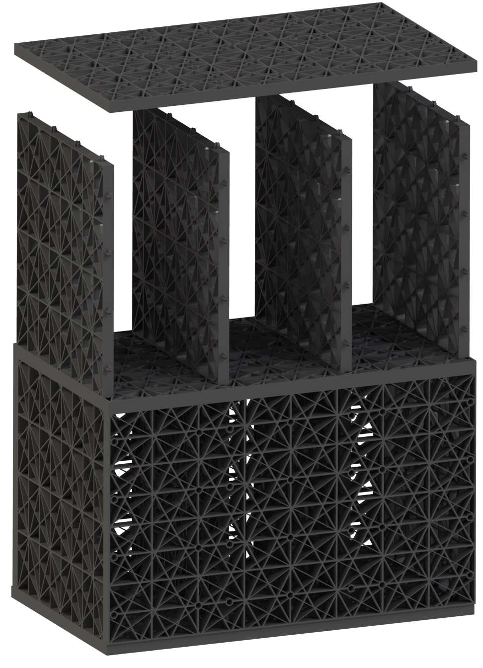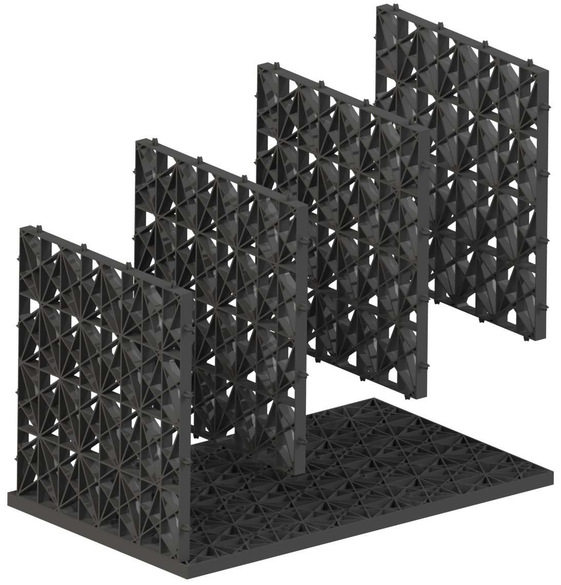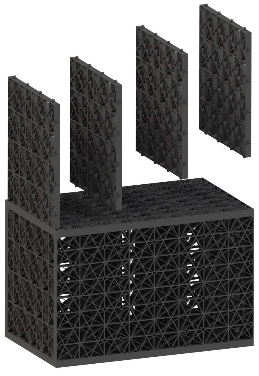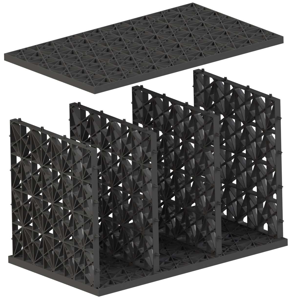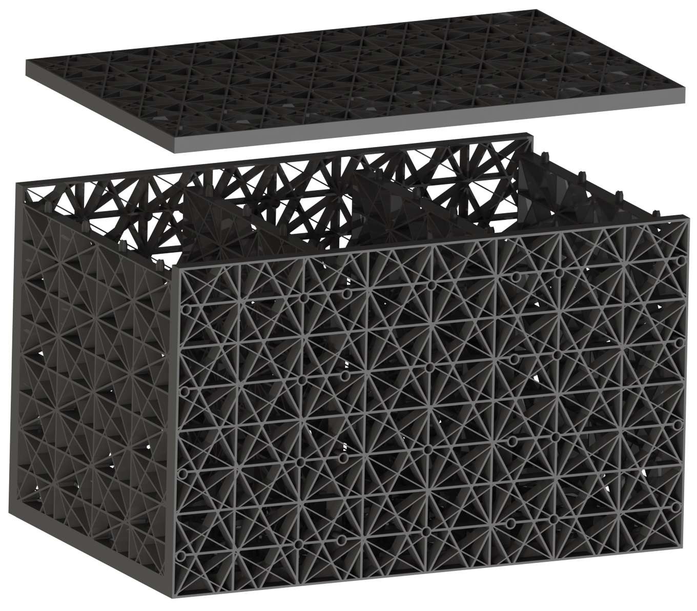 De Matrixbox is een sterk waterdoorlatende box met een extreem hoge buffercapaciteit en waterzuiverende werking. In de infiltratiebox wordt het (regen)water gebufferd waarna het geleidelijk kan infiltreren in de bodem. De Infiltratiebox heeft een hoge druksterkte, is aan alle zijden open en uitbreidbaar in alle richtingen. Dus de infiltratiekratten kunnen zowel in de lengterichting als breedterichting naast elkaar geplaatst worden. De infiltratieboxen worden als los plaatmateriaal geleverd waarna de infiltratieboxen op locatie in elkaar gezet kunnen worden. We vervoeren dan geen lucht zodat de transportkosten extreem laag zijn.